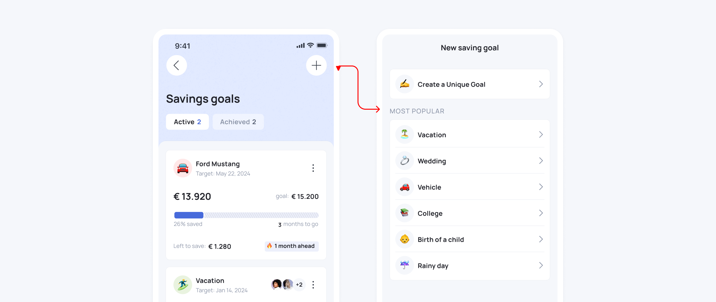 Új megtakarítási cél hozzáadásához kövesd ezt az útmutatót: